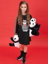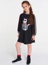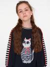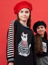 Örme Kumaştan Tasarlanmış Rahat Kalıp Kız Çocuk Elbise. Göğsünde Kedi Figürlü Baskısı Vardır Ve Astarsızdır.
