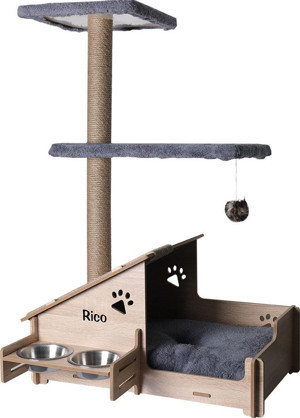 Nursoft Dekoratif Teraslı Kedi Evi Ve Mama Kabı Seti