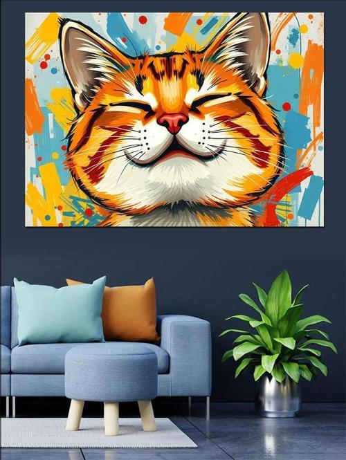 Tablomega Kedi Gülümseyen Portre Çizim Dekoratif Kanvas - Mdf Ahşap Tablo