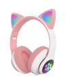 Kedi Kulaklı LED Işıklı Bluetooth Kulaklık, Pembe, Mikrofonlu, Hafıza Kartı Girişli, PC Tablet Laptop Uyumlu, Kulak Üstü