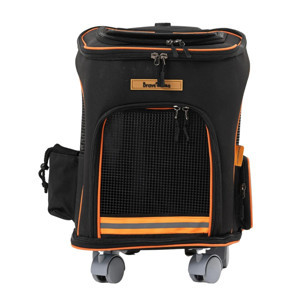 Reyo Brave Paws 4 Tekerlekli Frenli Yırtılmaz Plastik Fileli Kedi ve Köpek Taşıma Çantası Siyah - Image 1