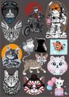 Reysa Tasarım Kediler Sticker Set-16 16 Parça Telefon, Tablet, Defter, Laptop Sticker