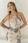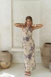 Moda Stil Regular V Yaka Maxi Boy Cut Out Detaylı Baskılı Esnek Örme Elbise - Image 1