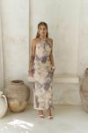 Ersefa Moda Stil Regular V Yaka Maxi Boy Cut Out Detaylı Baskılı Esnek Örme Elbise