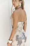Moda Stil Fitted Degaje Yaka Maxi Boy Taş Baskı Tül Örme Elbise - Image 1