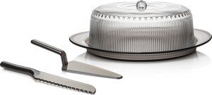 EWS Şeffaf Akrilik Kek Fanusu ve Servis Seti – 33 x 39 x 14 cm (4 Parça)