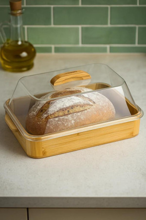 Bambum Modica - Akrilik Kapaklı Bambu Kek Fanusu Dikdörtgen Küçük