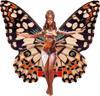 Özellikle güzelliğin ve zarafetin bilinen simgesi olan kelebek, yeniden doğuş, yenilenme ve gelişme kapasitesiyle ilişkili güçlü bir hayal gücü çağrışımına sahiptir. Bütün bunlar kelebeği sanatsal yaratımda popüler bir motif haline getirmiştir; bu örnekte kelebek kadın figürü kullanılmıştır. Özgür, kendini geliştirme yeteneğine sahip, iyiliksever ve yardımsever, tıpkı kelebek gibi yaşamı boyunca başkalaşım geçiren kadının imgesi.