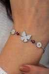 Papatya Silver Kelebek Papatya Uğur Böceği Renkli Mineli Rodyum Kaplama 925 Ayar Gümüş Bileklik - Uvps200153