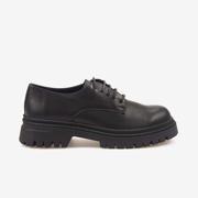 Kemal Tanca Hakiki Deri Siyah Kadın Günlük Bağcıklı Ayakkabı
