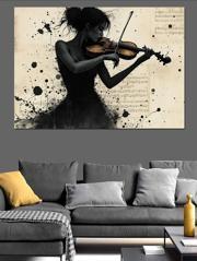 Keman Çalan Kadın Dekoratif Kanvas - Mdf Ahşap Tablo