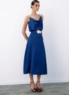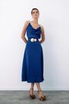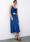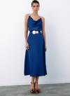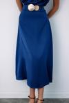 Yüksek bel, arka fermuarlı, astarsız, midi boy, birleşik kemer aksesuarlı kloş etek.