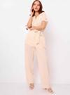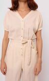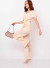Sateen Kruvaze Süs Taşlı Krep Tulum - Bej