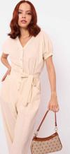 Kruvaze Süs Taşlı Krep Tulum - Bej - Image 1
