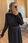 Kemerli Gömlek Yaka Merserize Elbise - Siyah, hafif ve serin tutan merserize dokusu ile gün boyu konfor sağlar.