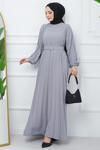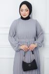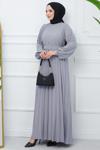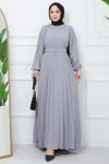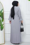 Nowa Scarf Pileli Fermuarlı Aerobin Kumaş Tesettür Ferace/Elbise - Gri - Image 1