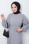 Hafsa Mina Kemerli Piliseli Aerobin Elbise Gri HM2339