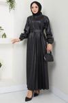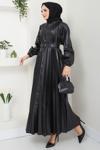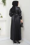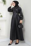 Ürün Özelliği : Bisiklet yakalı, piliseli ve kemerli Suni deri Tesettür Elbise modelidir. Bisiklet yakalıdır, kol ucu lastiklidir. Seyyar kemerlidir, astarsızdır. Ürün renginde konsept çekimlerinden dolayı ton farklılığı olabilir.