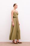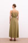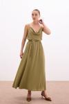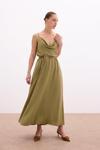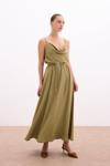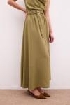 Yüksek bel, arka fermuarlı, gold kemerli uzun etek.