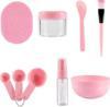9'u 1 arada maske seti: Bir karıştırma kasesi, ölçüm kaşıkları, bir sünger, bir spatula, fırça, bir sprey şişesi ve küçük bir yumuşak cam kavanoz dahildir. Bu mükemmel küçük bir settir ve evde kendi yüz maskelerinizi karıştırmak için ihtiyacınız olan her şeyi içerir.