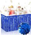 Parti masalarınızı göz alıcı mavi detaylarla süsleyin Kendinden yapışkanlı mavi metalize püsküllü masa eteği (75 x 275 cm), parlak ve enerjik görünümüyle doğum günü, baby shower, yılbaşı, mezuniyet ve temalı etkinliklerin vazgeçilmez dekorasyon ürünüdür.