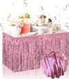 Modern ve zarif bir dokunuş arayanlar için ideal seçim Kendinden yapışkanlı rose gold metalize püsküllü masa eteği (75 x 275 cm), parıltılı ve sofistike görünümüyle doğum günü, nişan, bridal shower, bekarlığa veda ve lüks temalı organizasyonlar için mükemmeldir.