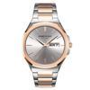 Metalik renkli çelik kordon, saatin genel tasarımını tamamlar.