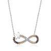 Sonsuza kadar sürecek aşkı anlatmanın en güzel yollarından biri de sevgiliye sonsuzluk sembollü gümüş takılar hediye etmektir. Sonsuzluk sembolü ebedi aşkın ve sadakatin işareti olarak evlilik yıl dönümü veya sevgililer günü gibi özel günlerde alınabilecek anlamlı hediyelerinden biri olabilecektir. Kelebekli sonsuzluk kolye 925 ayar gümüşten imal edilmiştir. Gümüş üzerine rose altın kaplama yapılmıştır. Rose altın kaplama yapılan gümüş kolye modelleri parlaklığını uzun süre muhafaza eder ve oksitlenmesi gecikir. Kolye üzerinde bulunan taşlar zirkondur. Gümüş kelebekli sonsuzluk kolye tamamı el emeği ile üretilmiştir. Tüm gümüş kolye modellerinde olduğu gibi gümüş kelebekli sonsuzluk kolye de el emeği ile üretilmiştir. Gümüş ve değerli taşlar nedeniyle belirtilen ürün ağırlığında ± %10 sapma olabilmektedir.