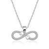 Sonsuzluk sembolü ile olanlara olan sonsuz sevginizi yansıtın. Sizin olduğu kadar sevdiklerinizin de keyifle takacağı bu kolye, aynı zamanda sevginizi paylaşabileceğiniz farklı bir hediye olacaktır. Sonsuzluk kalpler kolye 925 ayar gümüşten imal edilmiştir. Gümüş üzerine rodyum kaplama yapılmıştır. Rodyum kaplama yapılan gümüş kolye modelleri parlaklığını uzun süre muhafaza eder ve oksitlenmesi gecikir. Kolye üzerinde bulunan beyaz taşlar zirkondur. Gümüş olan zincir boyu ortalama 45 cm'dir. Bu özel tasarım sonsuzluk kalpler kolye modeli diğer tüm gümüş kolye modelleri gibi el emeği ile üretilmiştir. Gümüş ve değerli taşlar nedeniyle belirtilen ürün ağırlığında ± %10 sapma olabilmektedir.