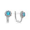 Gümüş Turkuaz Çiçek Desenli Yuvarlak J Kadın Küpe