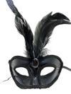 Balolar ve özel günler için mükemmel bir aksesuar olan Siyah Rugan Kaplama Siyah Tüylü Parti Maskesi ile göz kamaştırın!