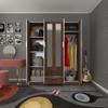 Ürünümüz 6 kapılı orta bölüm altında 2 çekmecesi olan bir gardıroptur. Sol 2 kapının olduğu bölümde 4 bölümden oluşan raflar mevcuttur. Orta bölümün altıda 2 çekmece mevcuttur. Orta bölümün üstünde elbise asmak için askılık mevcuttur. Sağ 2 kapının olduğu yerde üste tarafta yüklük hemen altında askılık mevcuttur. Ortadaki iki kapının üstünde boy aynası mevcuttur.