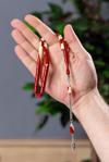 Bu toz kehribar tesbih, epoksi reçineyle renklendirilmiş ve usta ellerin maharetli dokunuşlarıyla şekillendirilmiştir. Zarif bir işçilikle hazırlanmış koza püskülüyle tesbihimiz, siz tesbih severlerin beğenisine sunuluyor.