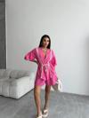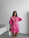 KETEN BEL BÜZGÜLÜ BLUZ-PANTOLON TAKIM - Fuşya