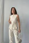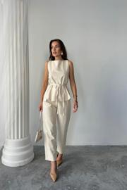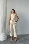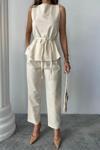 KETEN BLUZ - PANTOLON TAKIM MASSİMO MODELSCREAT KUMAŞ - Bej