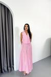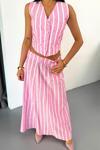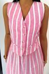 KETEN ÇİZGİLİ YELEK - UZUN ETEK TAKIM - Pembe