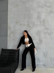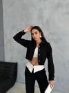 KETEN GÖMLEK-CROP-SALAŞ PANTOLON TAKIM - Siyah