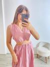 Şıklığın ve konforun buluştuğu bu yeşil yazlık elbise, doğal dokusu ve modern tasarımıyla dikkat çekiyor. Hafif kırışık görünümlü kumaşı, keten hissi vererek hem yaz sıcaklarında rahatlık sağlar hem de stil sahibi bir duruş sunar. Bel kısmındaki etnik desenli lastikli kemer detayı, vücut hatlarını zarifçe ortaya çıkarırken elbiseye hareket katıyor. Yan yırtmaç detayı ise hem feminen bir hava kazandırır hem de yürürken ekstra rahatlık sunar.