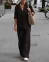 Barbora Gömlek Pantolon Rahat İkili Keten Takım