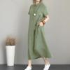 Keten Günlük Rahat Kısa Kol Yazlık Salaş Kadın Elbise
