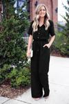 Yazlık V Yaka Kısa Paça Rahat Keten Tulum - Image 1