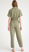 Kuşaklı gömlek yaka salaş tulum bej s255822 - Image 1