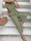 Keten Günlük Yazlık V Yaka Kısa Paça Tasarım Kadın Tulum - Image 1