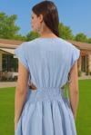 Bu yazlık mini elbise, rahatlığı ve şıklığı bir araya getiren mükemmel bir seçenek. Doğal keten karışımı kumaşıyla cildinizde serin ve ferah bir his bırakırken, zarif V yaka tasarımı ve cut out detaylarıyla da tarzınızı yansıtabilirsiniz. Skater kalıbıyla vücudunuza mükemmel bir uyum sağlayan elbise, plajda veya şehirde şık ve rahat hissetmenizi sağlayacak.