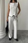 KETEN KENARLARI BİYELİ YELEK - PANTOLON TAKIM - Beyaz