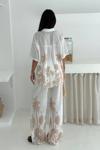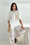 Asprin Fashion Keten Kumas Palmiye Baskılı Cep Taş Detaylı Takım Krem