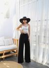 Keten Önü Çapraz Parçali Lasti̇kli̇ Ve Bağcikli Geni̇ş Paça Pantolon