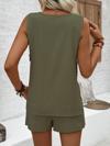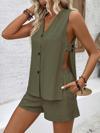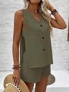 Keten Yazlık Dekolteli Kolsuz Bluz Şort İkili Haki Takım
