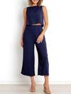 Keten Yazlık Yüksel Bel Capri Pantolon Sırt Detaylı Kolsuz İkili Takım