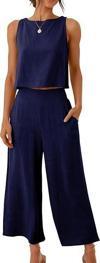 Keten Yazlık Yüksel Bel Capri Pantolon Sırt Detaylı Kolsuz İkili Takım